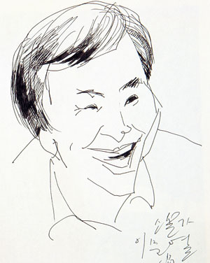 화가 권기철이 그린 머리 희끗한 작가 캐리커처에 비친 웃음. 거기에 묘한 그늘이 묻어나는 것은 슬픈 전쟁을 치른 우리 모두의 초상은 아닐까.