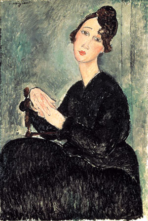 기다란 목과 타원형 얼굴, 단조로운 배경은 야수파와 입체파의 화풍들이 주류를 이루던 파리화단의 분위기 속에서 고전주의로의 회귀적 요소를 담아내고 있어 이채로움을 더해 준다. 모딜리아니가 36세라는 짧은 나이에 결핵성 뇌막염으로 생을 마감하자 임신 중이던 그의 아내 잔 에뷔테른도 이튿날 스스로 목숨을 끊어 주위를 더욱 슬프게 만들었다. 그의 명성은 그가 죽은 뒤인 1922년 베른하임 죈 화랑에서 열린 유작전을 통해 재조명됐다.