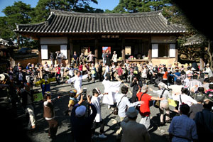 특히 하회마을 경우 이미 지난해 전체 관광객 77만5천396명을 돌파했고 축제기간 중 5만9천여 명이 찾아 3일까지 84만5천여 명으로 집계돼 1999년 엘리자베스 2세 영국여왕 방문 이후 11년 만에 '관광객 100만명'을 돌파할 것으로 기대된다.