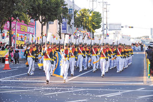 육군3사관학교 생도들이 건군 제63주년 국군의 날을 기념해 1일 오후 영천 시내에서 퍼레이드를 펼쳐 시민들과 한약장수축제 관광객 등 으로부터 큰 호응을 얻었다.