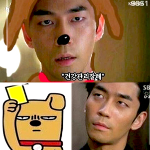 신성록 카톡개 합성 사진은 드라마 '별에서 온 그대' 신성록 장면과 캐릭터 프로도의 모습이 함께 담겨있다. 특히 신성록 캡쳐 사진 위에 한 누리꾼이 프로도의 모습을 덧그려 보는 이들을 폭소케 했다.