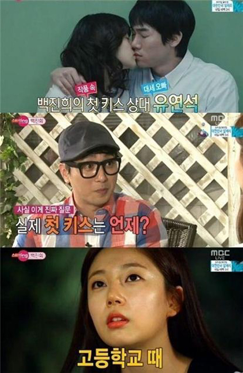 당시 백진희는 "작품 속 첫 키스는 영화 '열 여덟 열 아홉'에서 했는데 상대배우는 유연석이였다"라고 밝혔다.
