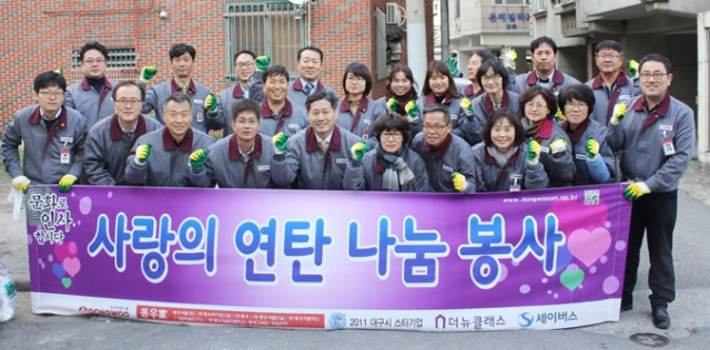동우씨엠㈜은 26일 대구 수성구 수성3가 일대에서 '2015 사랑의 연탄나눔' 전달식을 갖고 연탄나눔 봉사활동을 펼쳤다.