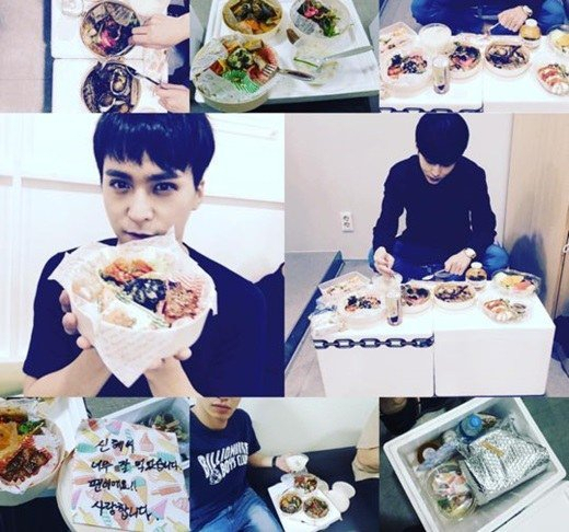 공개된 사진에는 박신혜가 용준형을 위해 비스트 멤버들에게 보낸 도시락이 한상 가득 차려져 있었다.