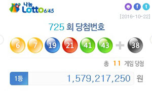 나눔로또는 22일 추첨된 725회 로또당첨지역 복권방이 서울 은평구 진관동 '드림로또' 등 11곳이라고 공개했다.