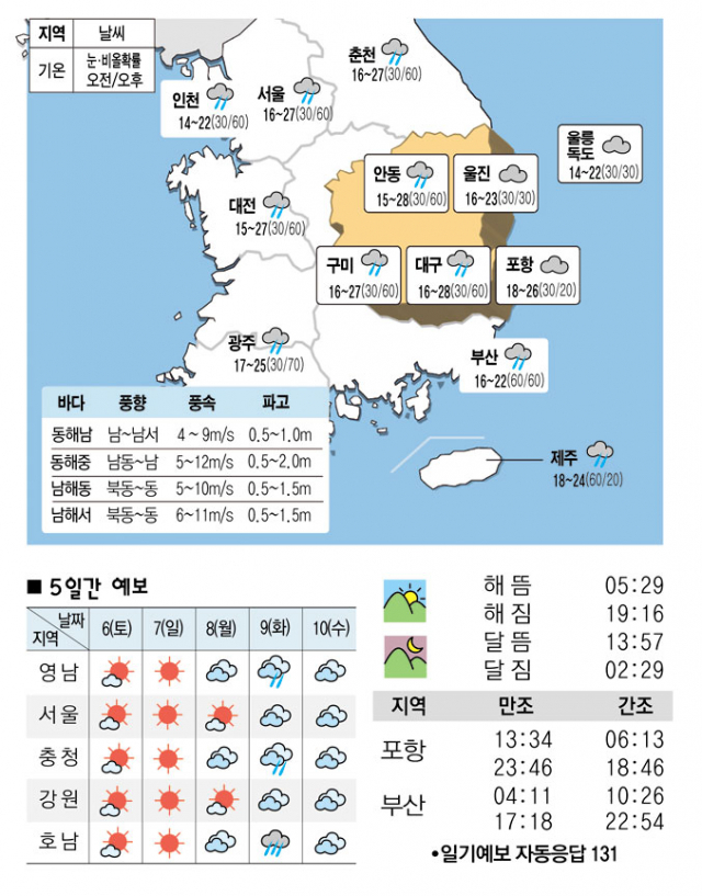 날씨-5월 5일(금) "곳에 따라 한때 비"