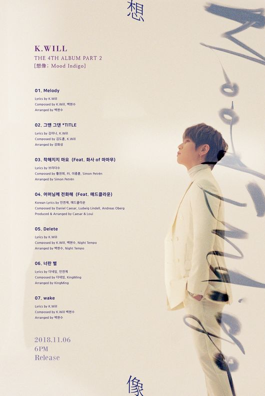 네 번째 정규앨범 파트 2 [想像; Mood Indigo]를 통해 아티스트와 공동 프로듀서로서 자신의 커리어를 더욱 단단히 한 케이윌은 정직하고 담백한 음악으로 음악적 진화를 꿈꾼다.