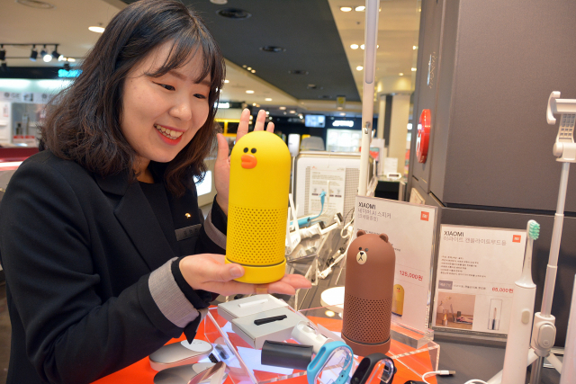소확행을 추구하는 최근 트랜드에 맞춰 나를 위한 '셀프 기프팅'(스스로를 위한 선물·Self - Gifting)을 하는 이들이 갈수록 늘어나는 추세다. 대구백화점 프라자점 9층 가전 IT기기 전문코너에는 귀엽고 깜찍한 인공지능 스피커가 눈길을 끈다. 음성명령 혹은 실시간 스트리밍 음악만 듣는 게 전부가 아니라 포터블 스피커로서의 다양한 활용을 보여준다. =대구백화점 제공