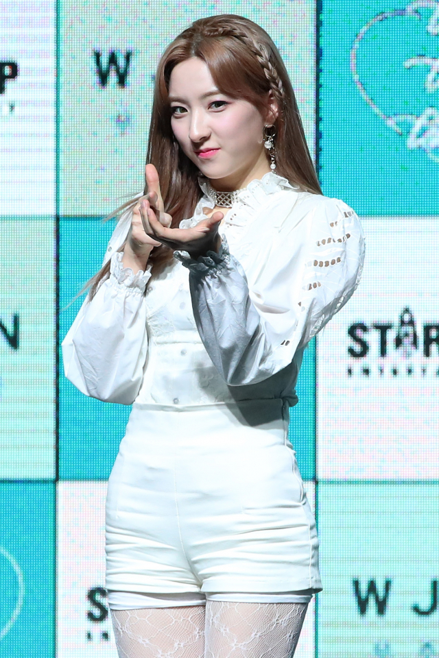 그룹 우주소녀 은서가 8일 오후 서울 광진구 예스24라이브홀에서 열린 새 미니앨범 '우주 스테이(WJ STAY)?' 발매 쇼케이스에서 포즈를 취하고 있다. 연합뉴스