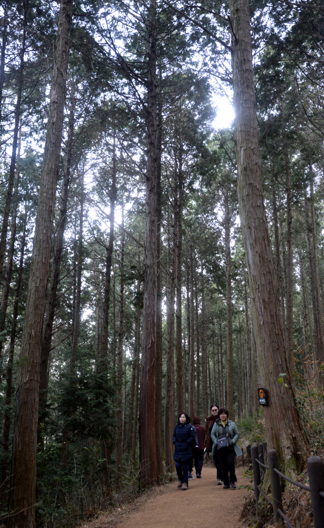 달아공원을 지나 미륵도의 중심으로 접근한다. 목표지점은 미륵산 미래사. 편백나무 숲의 유명세를 좇은 것이다. 미래사 바로 앞까지 자동차로 오른다. 경사가 꽤 급하다. 좀체 쓰지 않던 변속 기어를 넣는다. 편백나무가 드문드문 보이는가 싶더니 군락이다. 창문을 열자 편백나무 향이 흠뻑 들어온다. 사우나 마니아들에게 익숙한 향이다. 히노키 탕의 기본 재료인 편백나무다. 천연 항균물질, 피톤치드가 많아 새로 태어나는 느낌이다. 비가 오는 날에는 향이 훨씬 진해진다.
