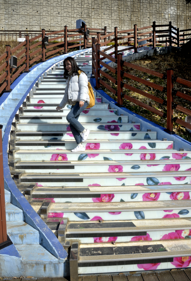 서피랑마을에 설치된 피아노 계단. 3옥타브까지 소리를 낼 수 있어 관광객들의 발도장을 한 몸에 받고 있다. 이채근 기자 mincho@imaeil.com