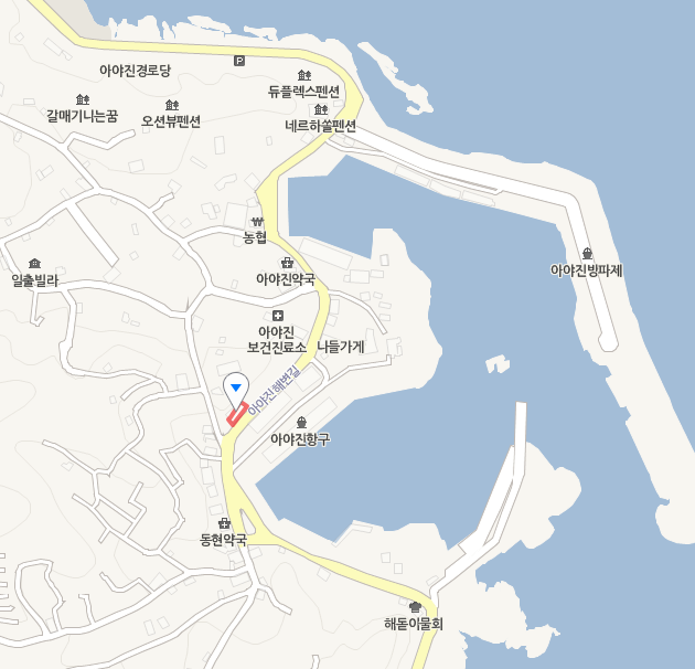 고성에서도 동쪽 아야진항에 위치한 곳이다. 아야진보건진료소 바로 남서쪽. 아야진리조트 및 아야진해수욕장에서는 남쪽. 아야진초등학교에서는 동남쪽.