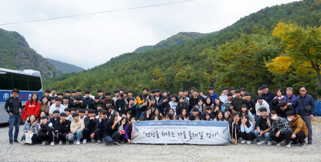 대구중앙고등학교(교장 박재찬) 1, 2학년 학생 485명은 23일 인솔 교사들이 함께한 가운데 '건강을 채우는 가을 올레길 걷기'를 주제로 해인사 소리길, 김천 사명대사길, 함양 선비길, 주왕산 주산지 일대를 다녀왔다. 친구, 사제간 정을 쌓으며 학생들의 체력을 키우고 정서도 안정되길 바라는 의미에서 진행한 프로그램이다.