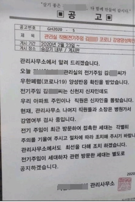 일부 아파트 등에 확진자 개인신상 공고하기도