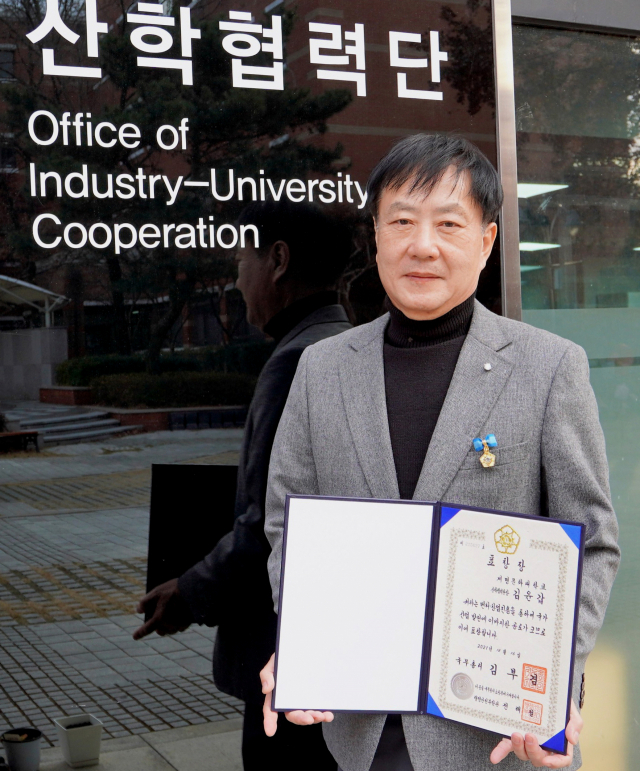 김윤갑 계명문화대 산학협력단장이 중소벤처기업부 주관 '2021 벤처창업진흥 유공 포상 시상식'에서 창업 기업 지원 및 창업 분위기 확산에 이바지한 공로로 국무총리 표창을 수상했다.