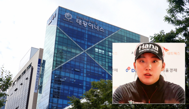 ㈜태왕 사옥 전경. 태왕은 3월 여자 골프팀 '태왕아너스 골프단'을 창단, 운영한다. 태왕 제공/ 오른쪽 하단 작은 사진은 김유빈 선수. 연합뉴스