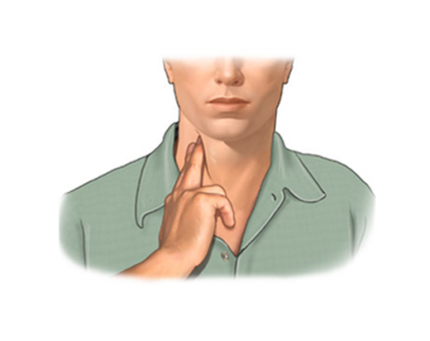 목에서 기도의 옆부분에서도 동일하게 맥박을 느낄 수 있다. 규칙적이라 해도 1분간 맥박수가 빠른 경우는 건강의 이상 신호일 수 있다.