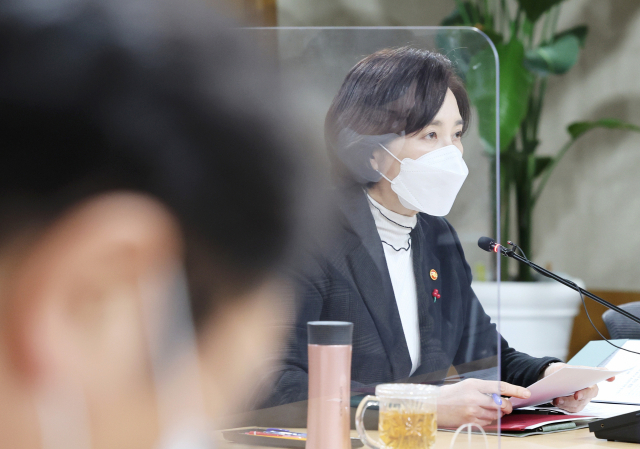 유은혜 사회부총리 겸 교육부 장관이 25일 오후 세종시 정부세종청사에서 열린 제23차 교육신뢰회복추진단회의에서 '국민대 법인의 도이치모터스 주식 취득, 학위수여 및 교원임용' 등과 관련한 교육부 감사 내용을 설명하고 있다. 연합뉴스