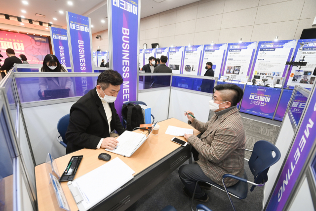 경북 구미코에서 구미 강소연구개발특구사업을 알리고 사업성과 공유를 위한 '구미 강소연구개발특구 테크페어'가 열리고 있다. 구미시 제공