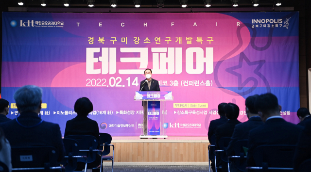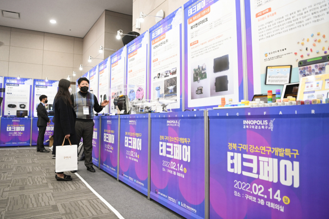 구미시와 금오공대는 14일 구미코에서 구미 강소연구개발특구사업을 알리고 사업성과 공유를 위한 '구미 강소연구개발특구 테크페어'를 열었다.