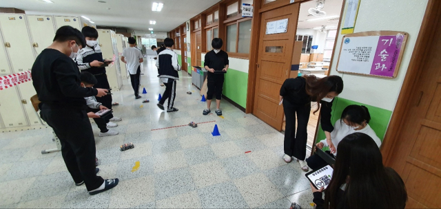 대구시교육청은 '2022. 인공지능(AI) 교육 선도학교' 49곳을 선정했다고 23일 밝혔다. 대구 월암중에서 '인공지능(AI) 자율주행자동차 주행' 실습을 하고 있다. 대구시교육청 제공