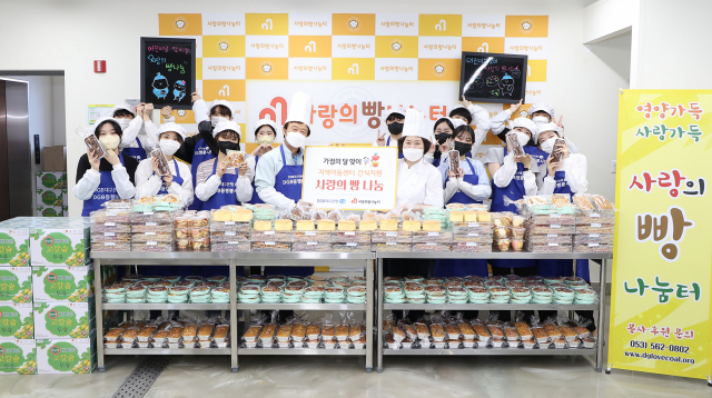 DGB대구은행은 3일 '사랑의 빵 나눔터(대표 심미진)'에서 사랑의 빵 나눔 행사를 진행했다. 임직원으로 구성된 동행봉사단과 대학생 홍보대사 등 20여명이 빵을 만들고 포장해 대구 지역아동센터를 이용하는 어린이 2천100여명에게 전달하는 행사였다. 이에 앞서 2일에는 대구시사회복지협의회(회장 정병주)에 대구 8개 구·군 800명의 취약계층 아동에게 나눠 줄 학용품 세트를 전달했다.