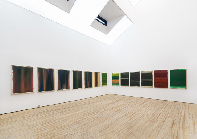 그는 "수평선의 큰 획은 화면을 편안하게 느끼게 하고 수직의 나무와 숲은 화면을 고요하게 느끼도록 구성했다"며 "이러한 정적 구도와는 반대로 밝고 선명한 연둣빛을 접목시킴으로써 정적 요소와 동적 요소의 조화를 꾀하고자 했다"고 말했다. 전시는 27일까지.