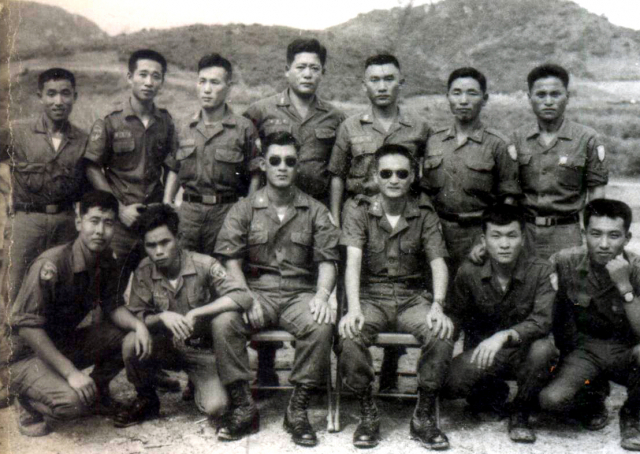조규동 예비역 소령이 베트남 전쟁 당시 십자성부대 운용처 요원들과 함께 찍은 사진. 뒷줄 오른쪽 세 번째가 조규동 예비역 소령(당시 대위). 앞줄 오른쪽에서 세 번째가 임치수 중령, 네 번째가 김만성 소령. 조규동 예비역 소령 제공.
