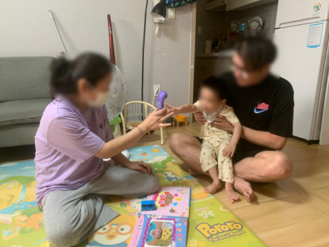 이선희(익명·28)씨와 남편 김대훈(익명·30)씨가 발달장애를 겪고 있는 4살 아이 동우와 놀아주고 있다. 김세연 기자