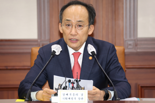추경호 경제부총리 겸 기획재정부 장관이 5일 정부서울청사에서 '경제 규제혁신 TF회의'를 주재하고 있다. 연합뉴스