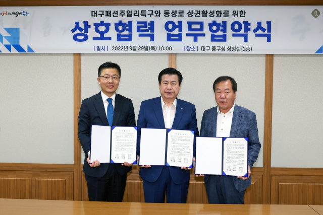 롯데백화점 대구점과 대구 중구청, 대구패션주얼리특구상인회가 최근 업무협약을 체결했다. 롯데백화점 대구점 제공