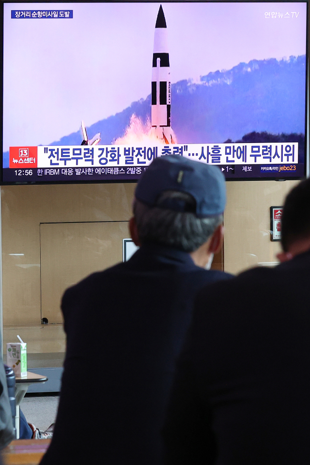 북한이 9개월 만에 장거리 순항미사일을 발사했다고 공개 보도한 13일 오후 서울역 대합실에 관련 보도가 나오고 있다. 연합뉴스