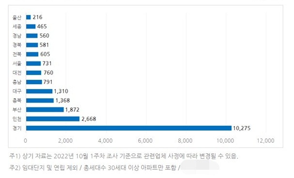 부동산 중개 플랫폼 ㈜직방(대표 안성우)이 조사한 바에 따르면 11월 전국 아파트 입주 물량은 총 2만2천202가구다. 임대단지와 연립을 제외하고 총 가구 수가 30가구 이상인 아파트만 대상으로 조사한 결과다.