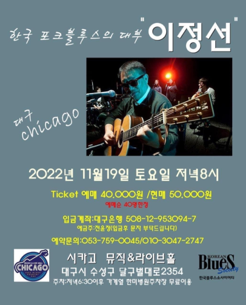 ▷이정선 콘서트/ 19일(토) 오후 8시/ 5만원(예매 4만원)/ 문의 010-3047-2747.