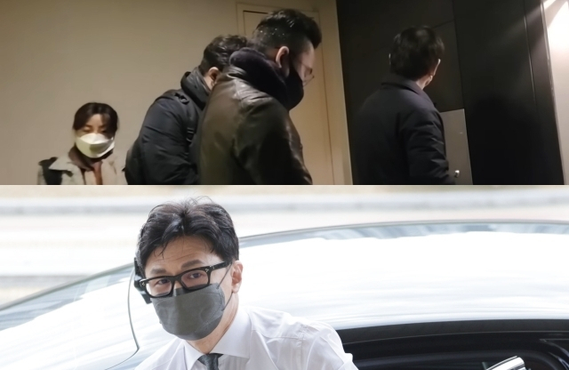 (위)27일 한동훈 법무부 장관 집을 찾은 시민언론 더탐사 취재진, (아래)한동훈 장관. 더탐사 유튜브, 연합뉴스