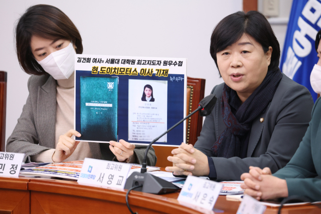 더불어민주당 서영교 최고위원이 6일 오전 국회에서 열린 최고위원회의에서 김건희 여사 모녀의 도이치모터스 주가조작 연루 의혹과 관련해 발언하고 있다. 연합뉴스