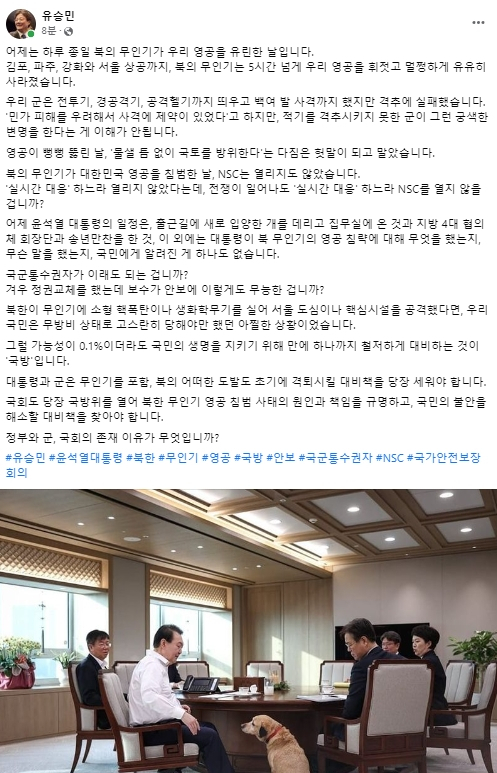 그는 "'실시간 대응'을 하느라 열리지 않았다는데, 전쟁이 일어나도 '실시간 대응' 하느라 NSC를 열지 않을 건가?"라고 의구심을 나타냈다.