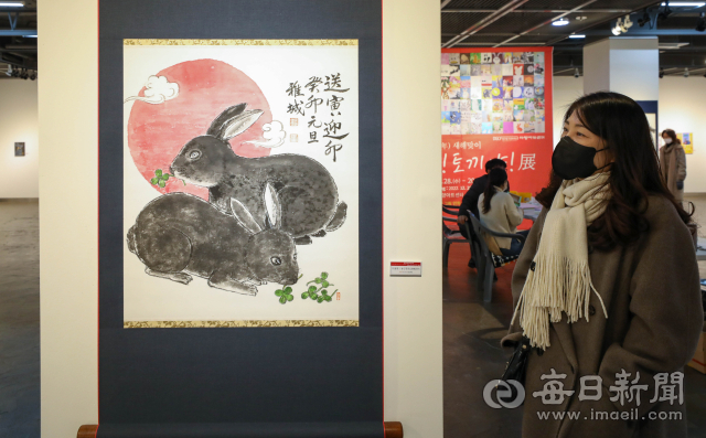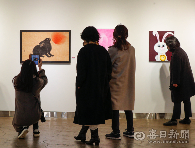 28일 대구 동구 아양아트센터에서 2023년 계묘년을 맞아 '토끼야! 토끼야!'전이 열려 눈길을 끈다. 내년 1월15일까지 진행되는 이번 전시에서는 서양화, 동양화, 수채화, 서예 등 토끼 소재 작품 114점을 만나볼 수 있다. 우태욱 기자 woo@imaeil.com