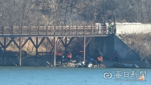 경산시 소속 6급 공무원 A씨가 실종된 것으로 추정되는 경북 구미시 남구미대교 인근 낙동강에서 소방대원 등이 수중수색을 하고 있다. 독자 제공