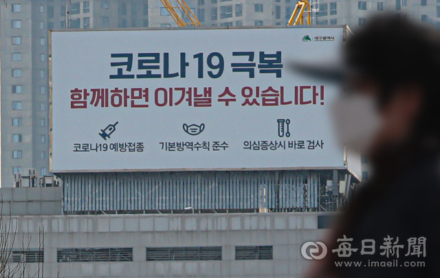 2020년 2월 18일, 코로나19 31번째 확진자가 대구에서 발생하면서 1차 대유행이 시작됐다. 그로부터 3년이 지난 2023년 2월 17일 오후 대구 수성구의 한 옥외광고판에 '코로나19 극복, 함께하면 이겨낼 수 있습니다'라는 안내문이 적혀있다. 1차 유행 당시 혹자는 '대구봉쇄'를 얘기하며 조롱했지만, 대구시민들은 묵묵히 인내하며 도시를 지켰고, 바이러스의 확산을 온 힘을 다해 기적처럼 막아냈다. 이제는 실내 마스크 착용 의무 1단계 조정에도 일일 신규확진자 수는 안정적으로 유지되고 있다. 코로나19와 함께 맞는 네 번째 봄, 이제는 일상 회복 준비를 논의해야 할 때이다. 안성완 기자 asw0727@imaeil.com