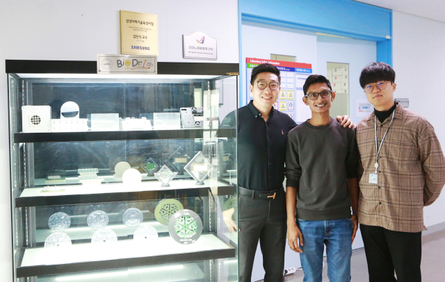 사진 왼쪽부터 DGIST 뉴바이올로지학과 김민석 교수, Aseer Intisar 석박사통합과정생, 강현규 학위연계과정생