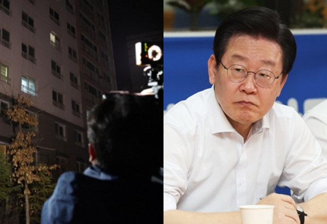 더불어민주당 이재명 대표의 경기지사 시절 초대 비서실장이 숨진 채 발견된 경기도 성남시 수정구의 자택 앞에서 10일 오전 취재진이 취재를 하고 있다. 오른쪽 사진은 더불어민주당 이재명 대표 모습. 연합뉴스