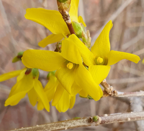 물푸레나뭇과의 낙엽활엽관목인 개나리는 우리나라가 원산지다. 중국, 일본에도 자생하는 개나리가 있지만 한국 개나리만큼 곱지 않다고 한다.