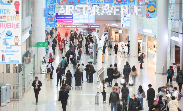 코로나 팬데믹 이후 세계 각국의 방역 해제로 한국인들의 해외 나들이가 늘고 있다. 붐비는 인천국제공항 제1여객터미널 면세구역. 연합뉴스