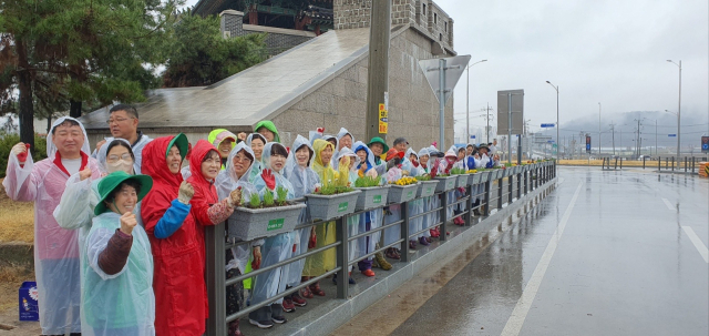 선산읍새마을부녀회, 바르게살기선산읍위원회와 함께 팬지, 데이지 등 심어