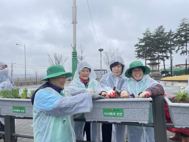 경북 구미시는 23일 선산읍새마을부녀회, 바르게살기선산읍위원회 회원 등과 함께 봄꽃인 팬지, 데이지 등을 선산읍 일대에 식재했다. 구미시 제공