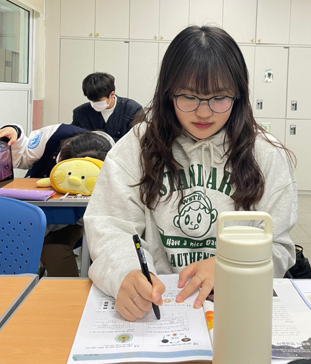 신하늘 학생은 일반고에서 배우는 보통 교과 수업에도 열심이다. 책과 필기구를 꺼내든 하늘이의 모습은 실습을 하던 모습과는 사뭇 다르다.