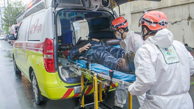 119구급대원들이 환자를 이송하는 모습. 자료 사진은 기사 내용과 무관함. 대구소방안전본부 제공