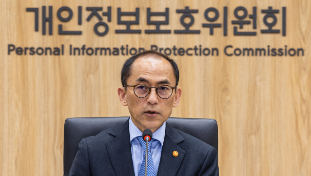 고학수 개인정보보호위원회 위원장이 12일 오전 서울 종로구 정부서울청사에서 열린 제6회 개인정보보호위원회 전체 회의에 참석해 안건을 설명하고 있다. 연합뉴스