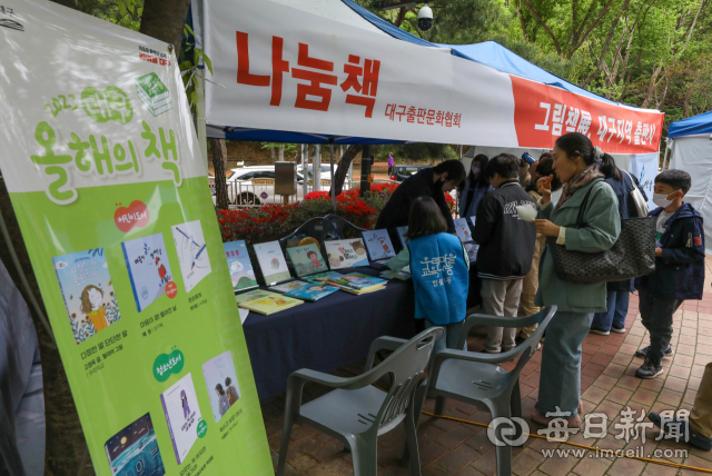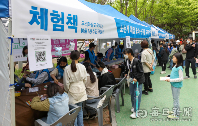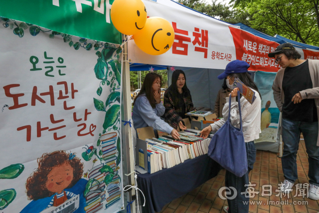 올해 첫 법정 기념일이 된 '제1회 도서관의 날'(4월11일)과 '제59회 도서관 주간'(4월12~18일), 세계 책의 날(4월23일)을 기념해 도서관마다 지역주민을 위한 다채로운 행사를 진행하고 있다. 15일 대구 수성구 용학도서관에서 열린 '우리마을 책나눔축제'를 찾은 주민들이 나눔·체험·즐길·맛있는·파티·놀이책으로 구성된 다양한 부스를 둘러보고 있다. 우태욱 기자 woo@imaeil.com